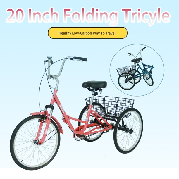 Goorabbit 3 Wheel Folding Adult Bike Foldable Adult Tricycle Trike 20 Inch Wheels Front Fork Suspension Shopping Basket Multiple Colors Walmart Com